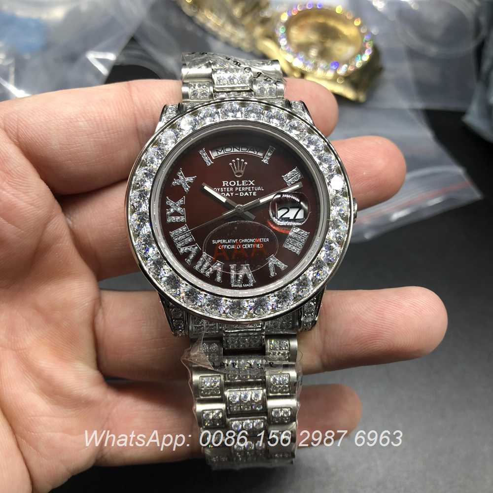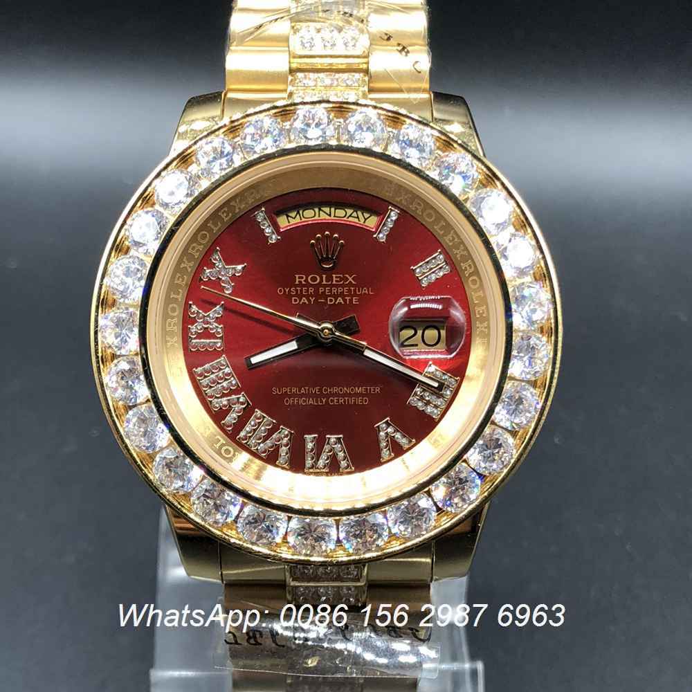Apresentado R045mh100 Rolex Daydate 43mm Gold Red Diamonds In Middle Strap Peterclock