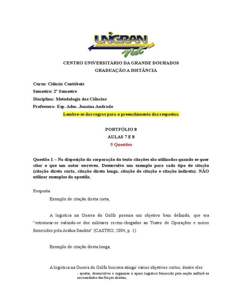 Como fazer citações direta (curta e longa) e indireta (paráfrase e condensação), aprenda de uma vez de forma fácil e rápida, além disso também será falado aprenda a como citar os autores, sua obras e páginas, nas citações do paper da uniasselvi e em qualquer outro trabalho cientifico que siga as normas da oii, gente.. Conforme aponta fontes (2010, p. Porém, nesse artigo trataremos apenas sobre a citação direta curta. Da mesma forma, possuímos artigos sobre as citações direta, indireta e indireta curta. Jan 13, 2021 · em outras palavras, você pode citar um autor de forma direta ou indireta. A) citação direta curta, mencionando a fonte antes da citação: Citação direta é a transcrição na íntegra de parte da obra do autor consultado. A indicação da página é obrigatória. B) citação direta curta, mencionando a.